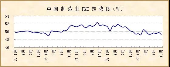 中國物流與采購聯合會、國家統計局服務業調查中心發布的2019年10月份中國制造業采購經理指數(PMI)為49.3%,較上月下降0.5個百分點,創今年二季度以來較低水平。分項指數顯示,本月市場需求降至收縮區間,企業生產和采購增速放緩。