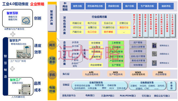 遠(yuǎn)大方略科技智能制造事業(yè)部,具有制造業(yè)自主知識(shí)產(chǎn)權(quán)的國(guó)產(chǎn)自主軟件:ERP、MES、WMS、APS,并能與各主流ERP系統(tǒng)集成,打通企業(yè)內(nèi)部信息系統(tǒng),并能與外部系統(tǒng)進(jìn)行集成(CRM、SRM)