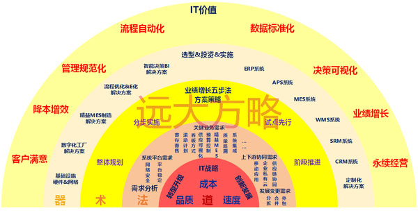 遠(yuǎn)大方略智能制造信息化運(yùn)用管理咨詢(xún)作為實(shí)施系統(tǒng)的指導(dǎo)思想,軟件為核心技術(shù),為中國(guó)中小實(shí)體企業(yè)提供量身定制的行業(yè)解決方案,實(shí)現(xiàn)企業(yè)的策略:創(chuàng)新、速度、效率、品質(zhì)、成本
