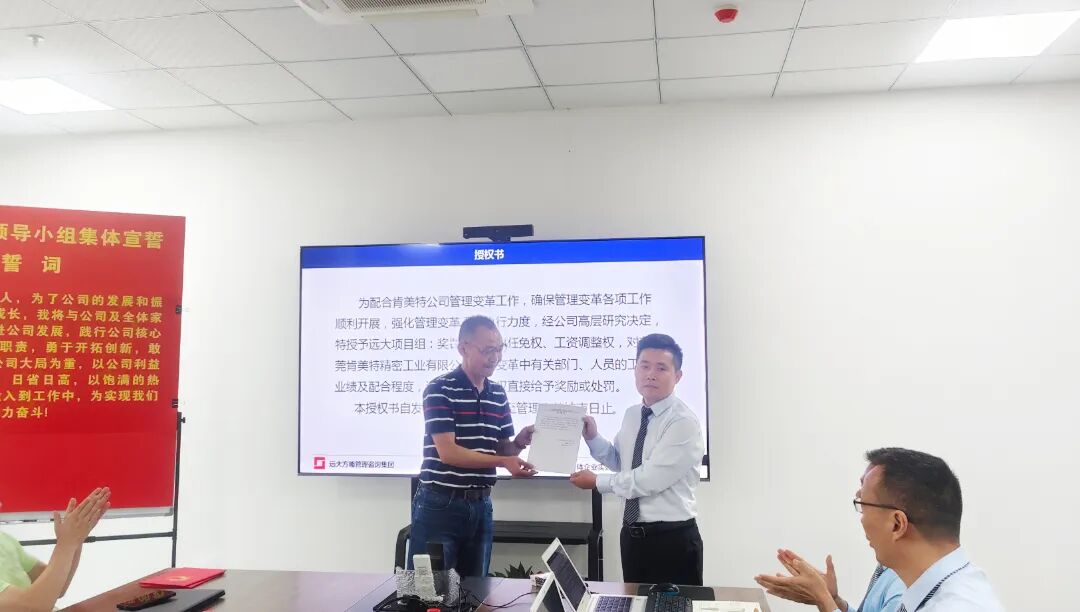 近日,東莞肯美特精密工業有限公司(以下簡稱“肯美特”)攜手遠大方略啟動《卓越運營》咨詢項目,旨在通過科學化、系統化的管理升級,全方位提升運營管理水平,進一步筑牢企業核心競爭力,為企業的高質量發展注入強勁動力。