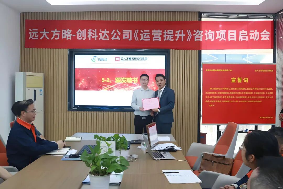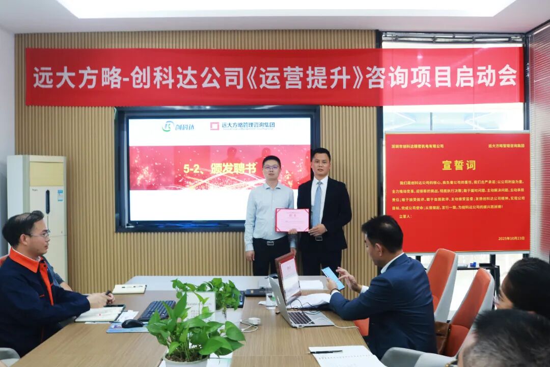 近日,深圳市創科達精密機電有限公司(以下簡稱“創科達”)攜手遠大方略啟動《卓越運營》咨詢項目,進行科學、系統的管理升級,優化供應鏈管理,減少庫存積壓,提升資金周轉率;現場 5S 管理營造干凈整潔的環境,提高效率與質量,降低事故率;完善組織架構,提升團隊管理效率,合理配置資源,提高決策準確性。全方位提升運營管理水平,為企業高質量發展注入強勁動力。
